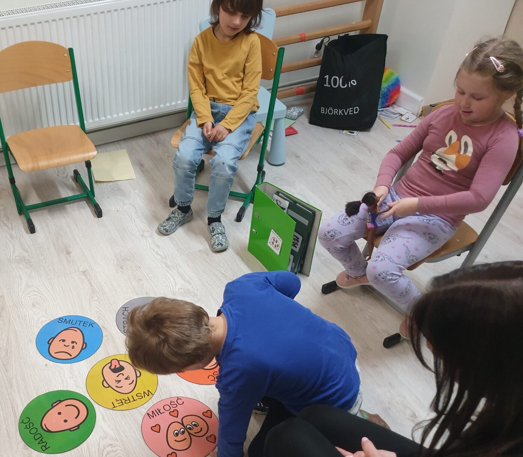 Zajęcia rozwijające umiejętności społeczne prowadzimy w małych grupach. Podczas zajęć ćwiczymy szereg różnych umiejętności potrzebnych do prawidłowego rozwoju relacji i kontaktów społecznych. Poznajemy siebie, nasze preferencje i uczymy się reguł obowiązujących w grupie rówieśniczej. Zajęcia pomagają w nabywaniu umiejętności rozpoznawania, nazywania i wyrażania emocji, pomagają budować pozytywny obraz siebie i zwiększają poczucie własnej wartości, uczą współpracy w grupie i pomagają rozwijać umiejętność radzenia sobie z trudnymi emocjami. Poprzez różnego rodzaju zabawy, gry, zadania rozwijamy sferę emocjonalno-społeczną, co jest niezwykle ważne dla naszych podopiecznych.